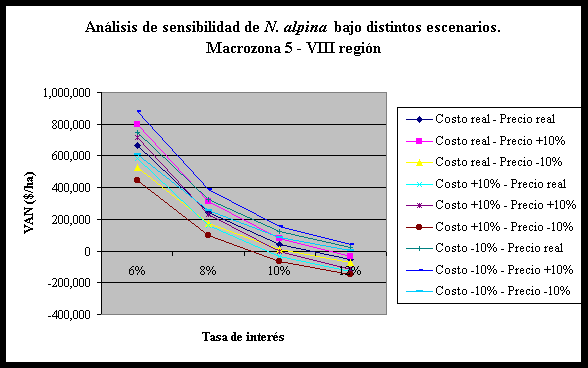 ANÁLISIS DE SENSIBILIDAD SEGÚN COSTOS DE ESTABLECIMIENTO: CONSTANTE PRECIOS DE PRODUCTOS: AUMENTO EN UN 10% DEL VALOR REAL |
